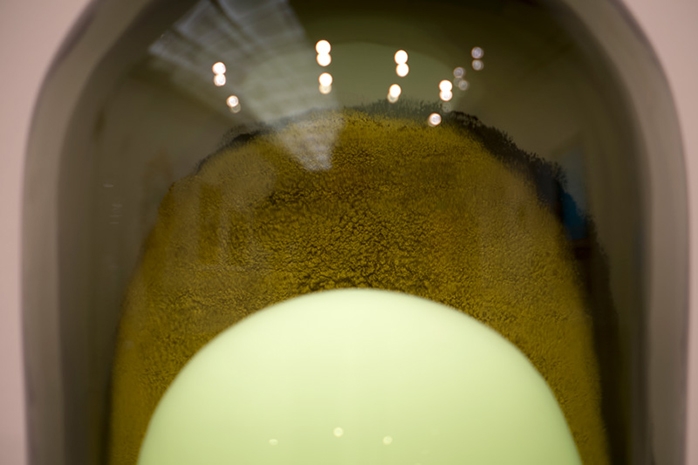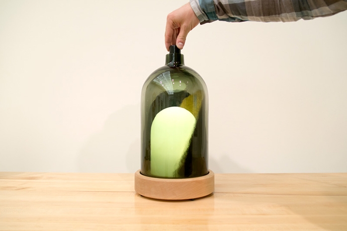 Two nested rotatable glass domes coated with reflective paint that can either dim or direct light.